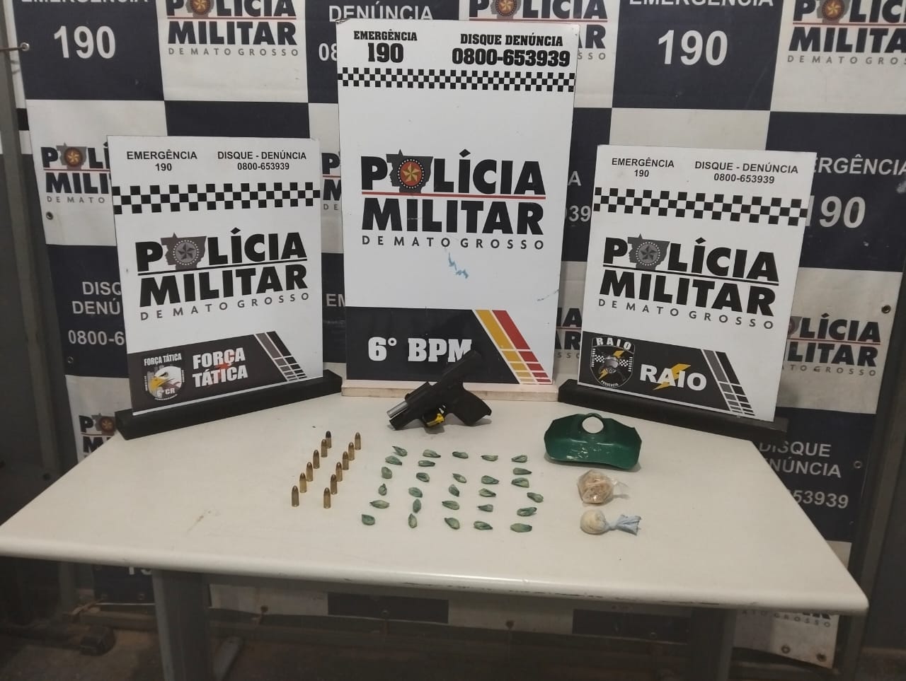 PM prende suspeito e apreende pistola 9mm e drogas em Cáceres
