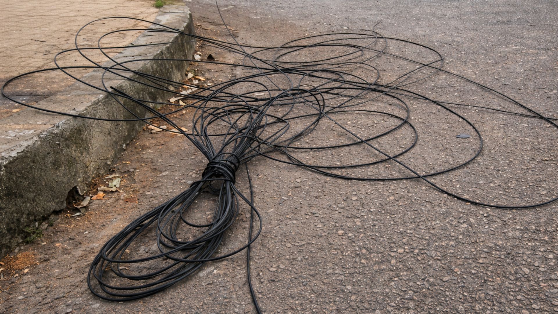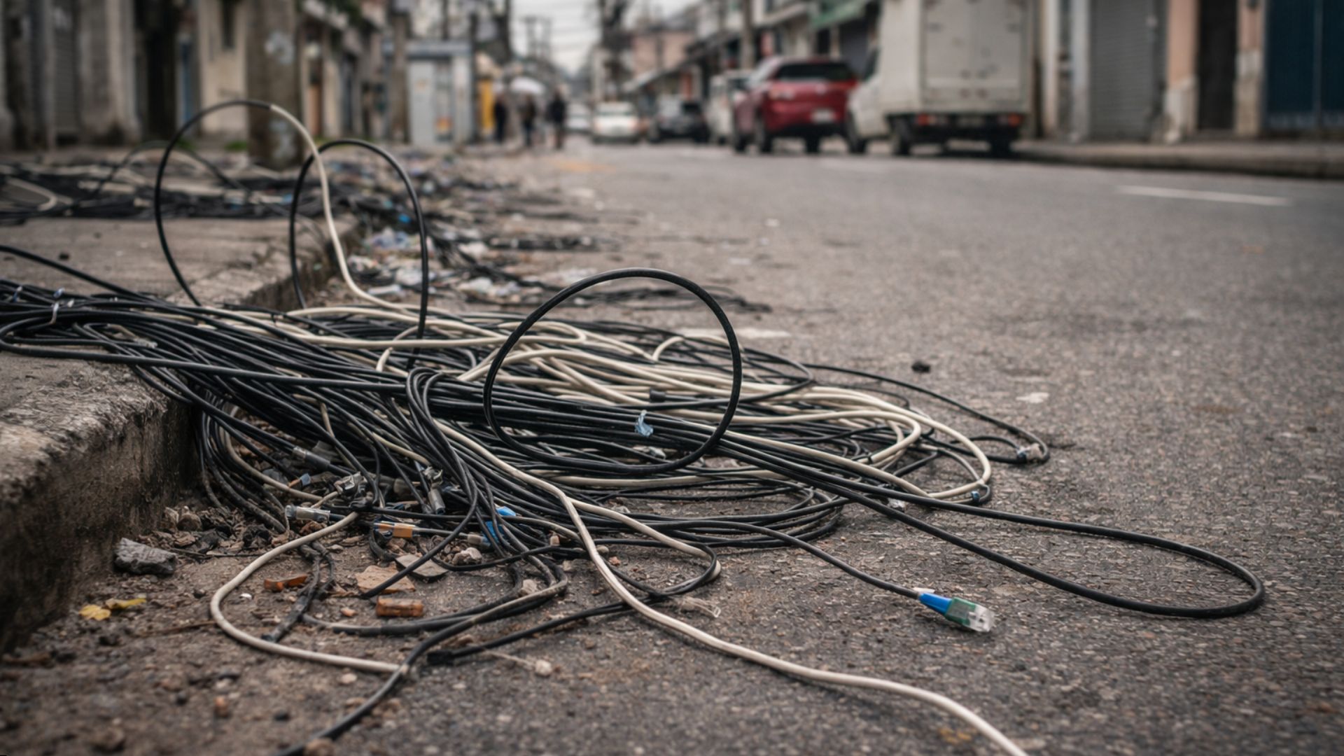 Fios de internet soltos voltam a causar risco de acidente em Pontes e Lacerda