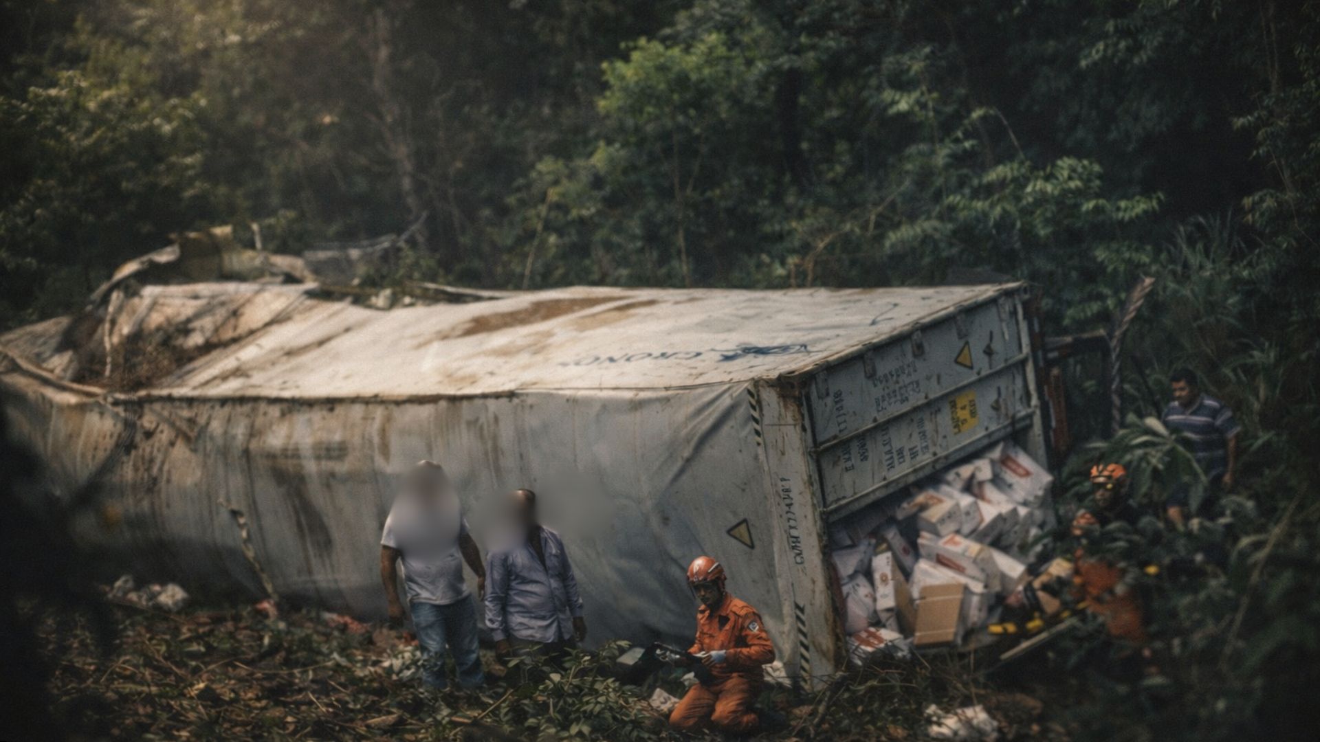Carreta com carne sai da pista na Serra do Mangaval na BR-070 em Cáceres