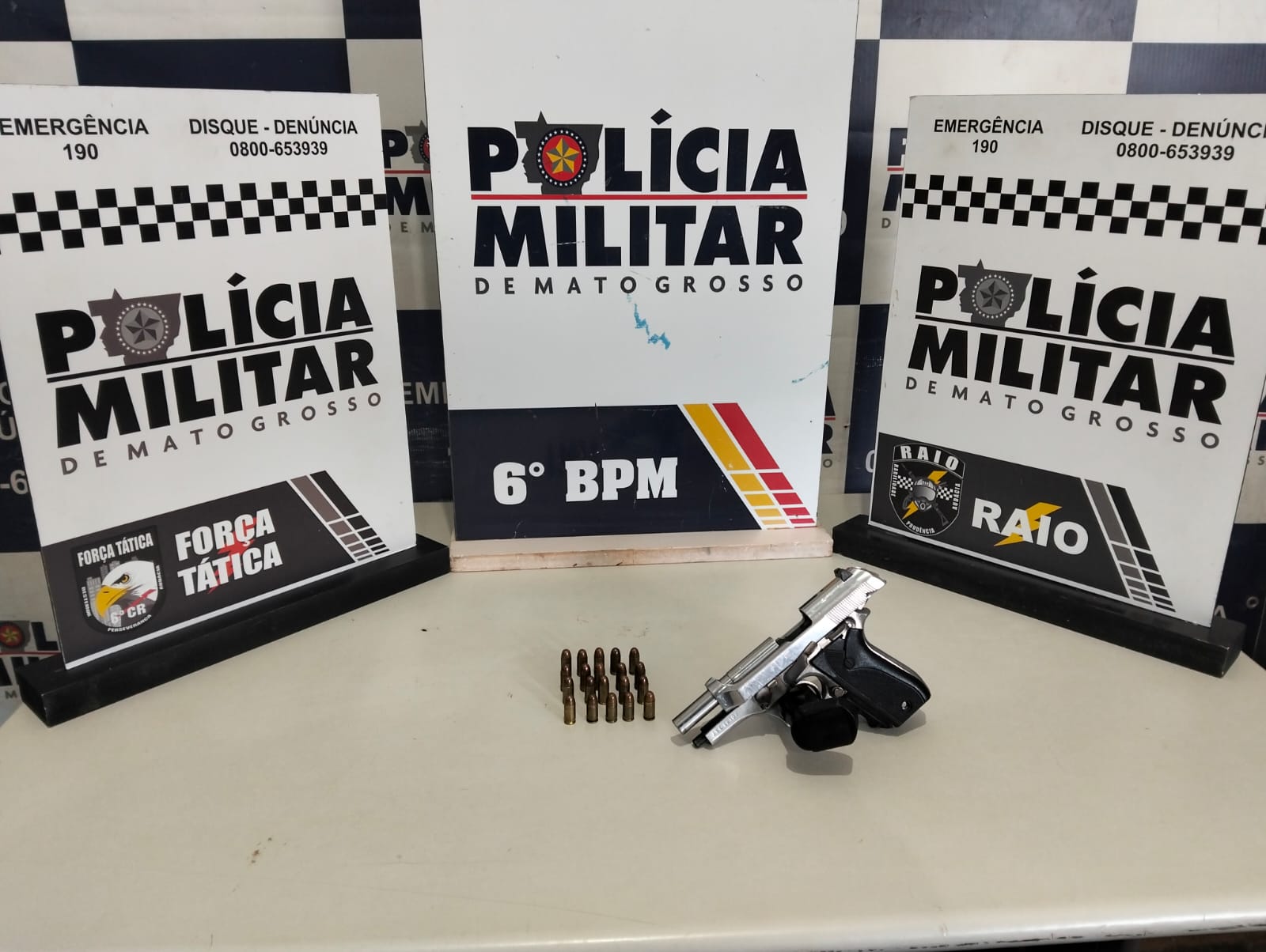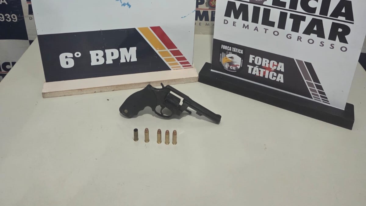 PM apreende revólver calibre 38 carregado em festa de santo em Cáceres
