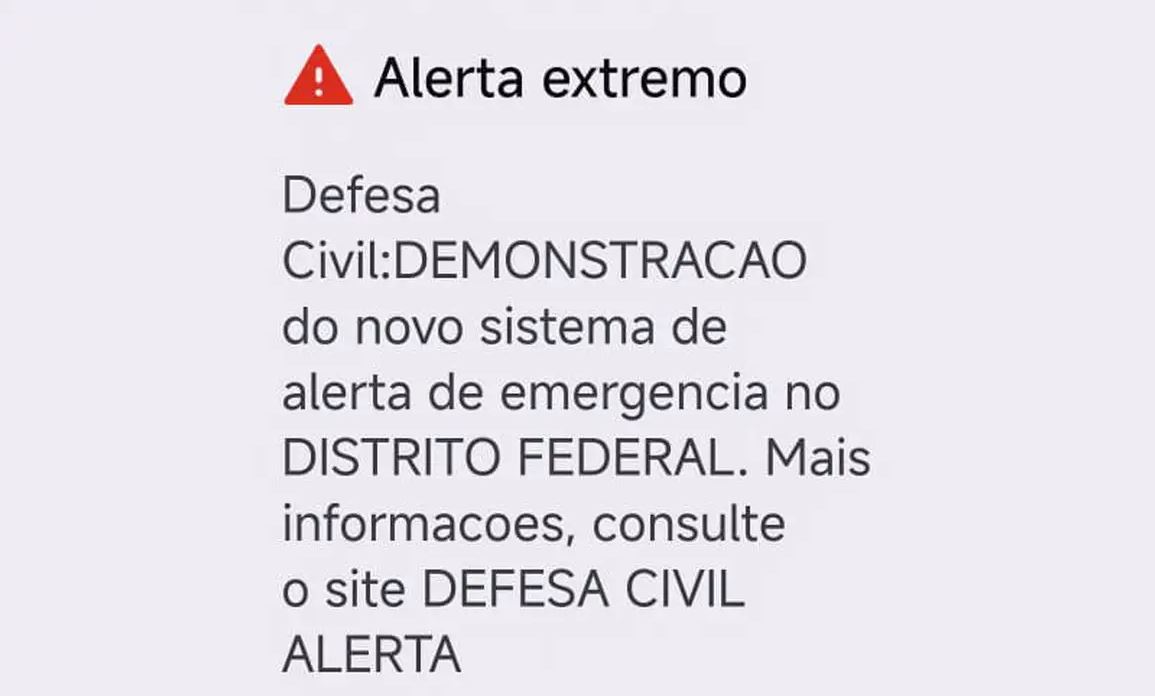 A Defesa Civil nacional enviou neste sábado (27) uma mensagem para o celular dos moradores do Distrito Federal e de mais 12 municípios de Goiás, Mato