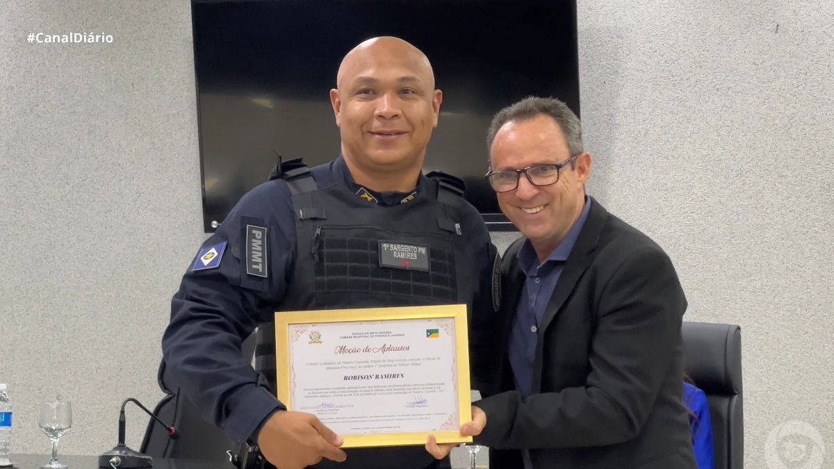 Na noite da quarta-feira (12), o 1º sargento Ramires, da Polícia Militar de Mato Grosso, foi homenageado com uma moção de aplausos na Câmara Municipal