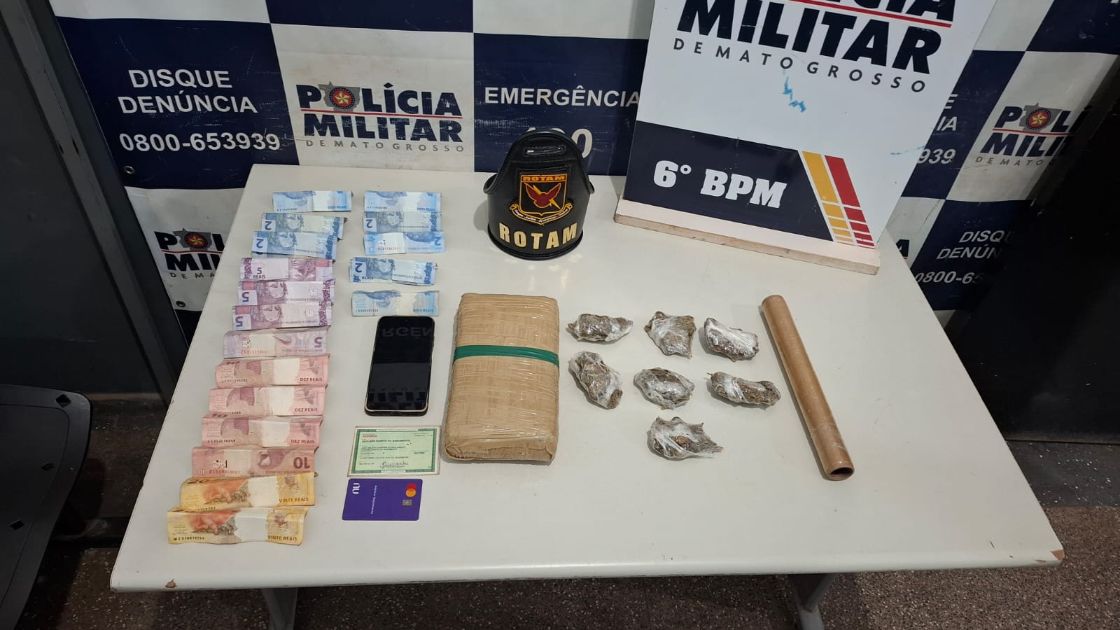 Durante patrulhamento da Operação Tolerância Zero e RAIO 12, na noite desta quinta-feira (6), a equipe RAIO da Polícia Militar apreendeu entorpecentes e materiais ligados