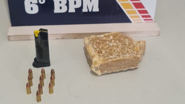 Na madrugada desta sexta-feira (07), a Polícia Militar do 6° Comando Regional apreendeu uma porção de pasta base de cocaína e um carregador de pistola