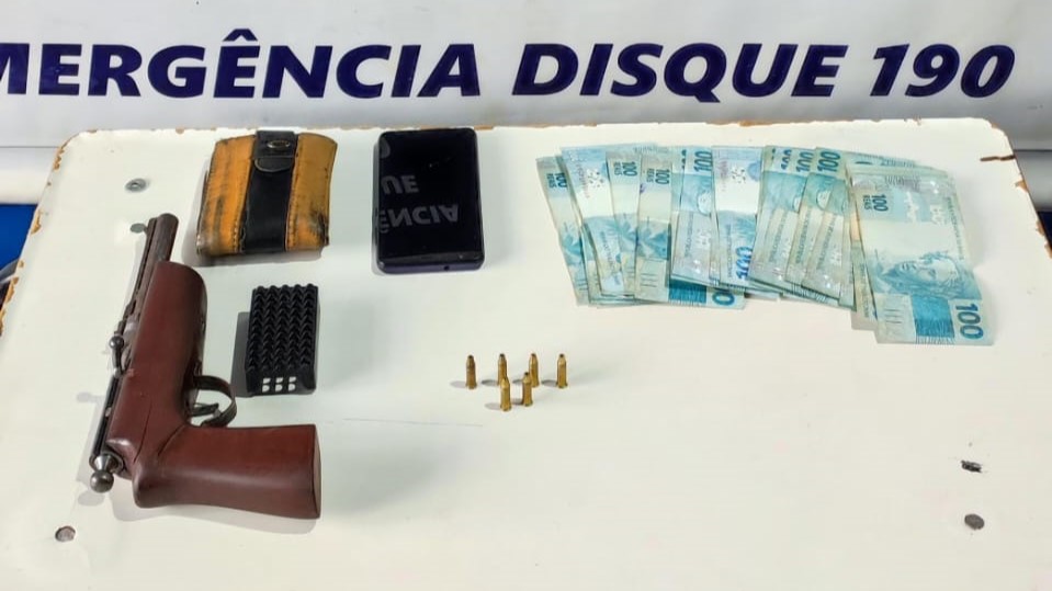 A Polícia Militar prendeu, na noite de sexta‑feira (24), um homem suspeito de porte ilegal de arma de fogo após denúncias sobre disparos efetuados em