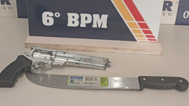 Um homem foi detido pela Polícia Militar na tarde desta sexta-feira (2) após se envolver em uma confusão e exibir um simulacro de arma de