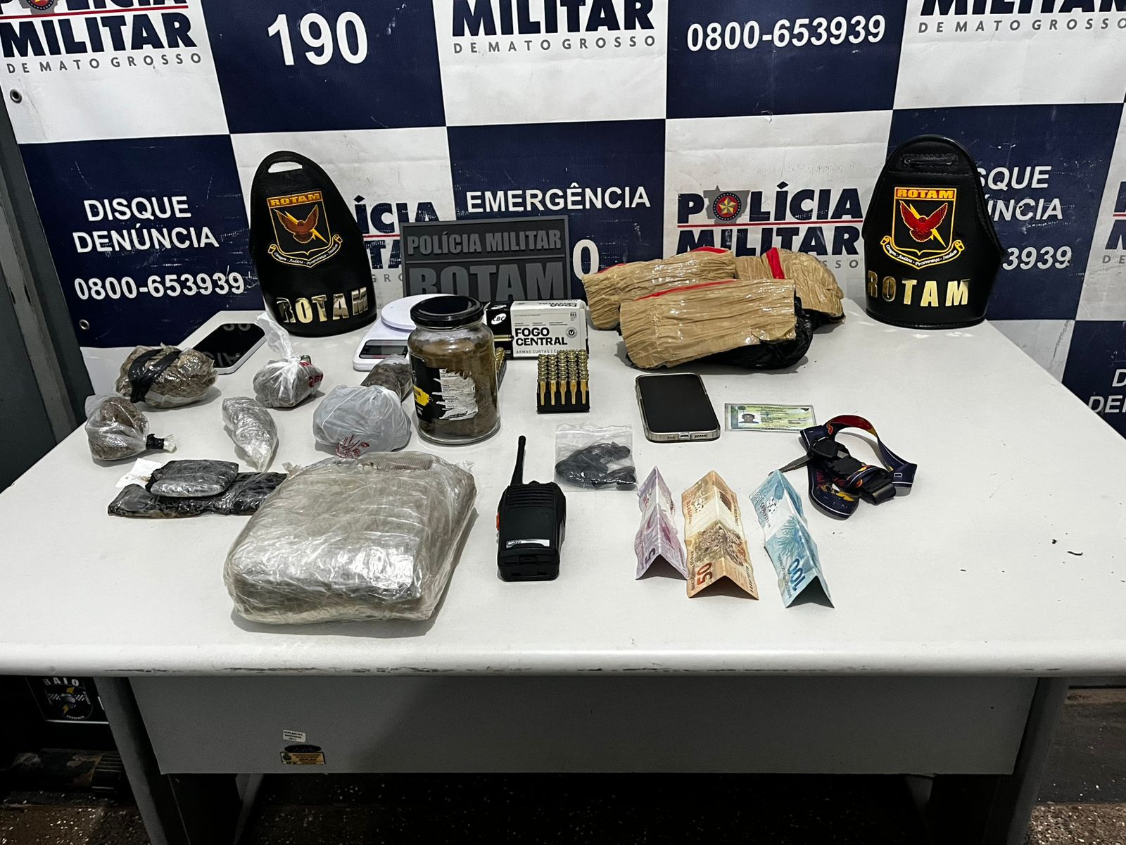 Um homem foi preso na noite desta quarta-feira (26) por tráfico de drogas e posse ilegal de munições, durante uma ação da equipe ROTAM 04,