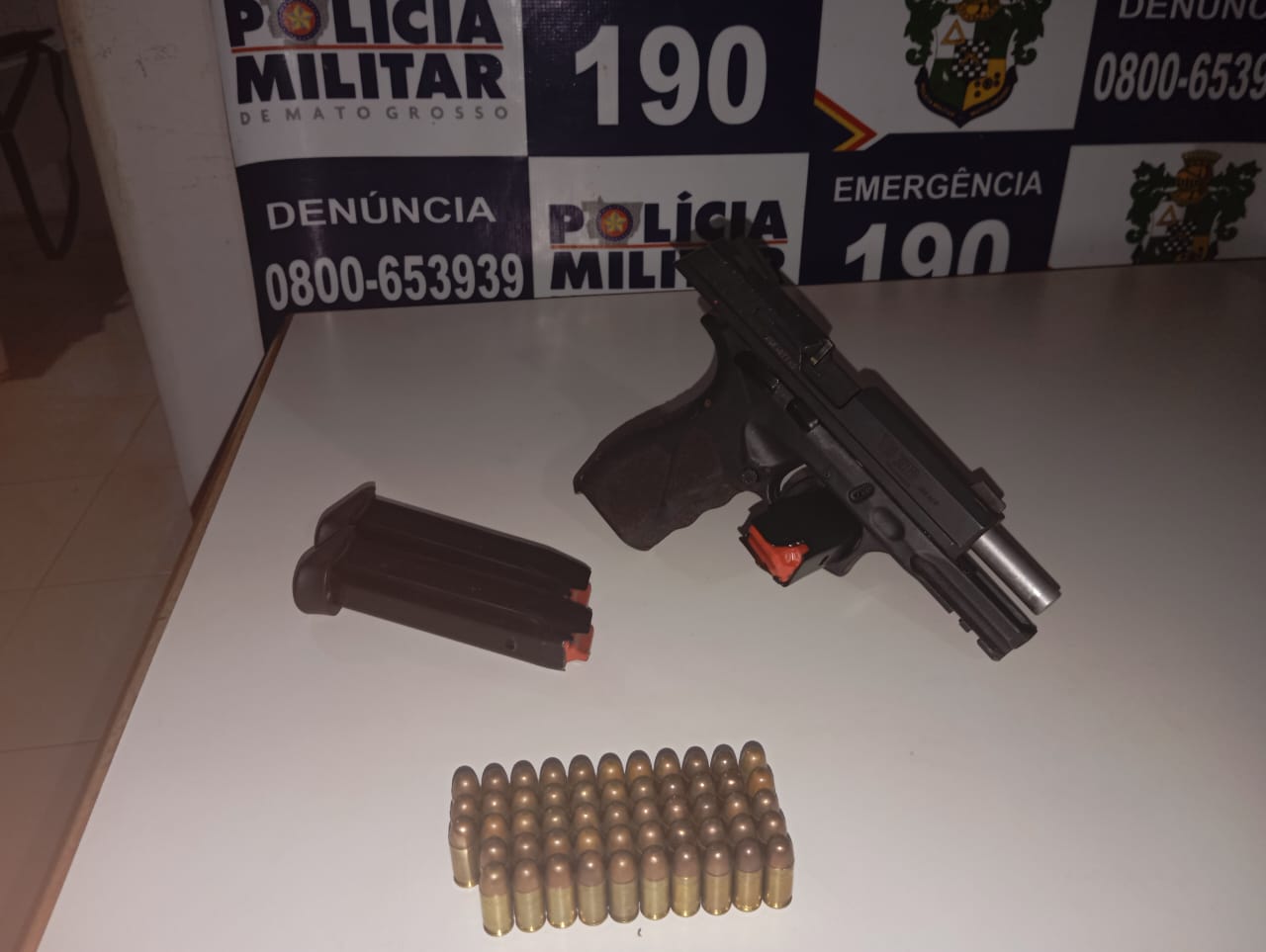 Uma mulher de 35 anos foi presa em flagrante na noite de quinta-feira (28/11) por porte ilegal de arma de fogo, ameaça e lesão corporal,