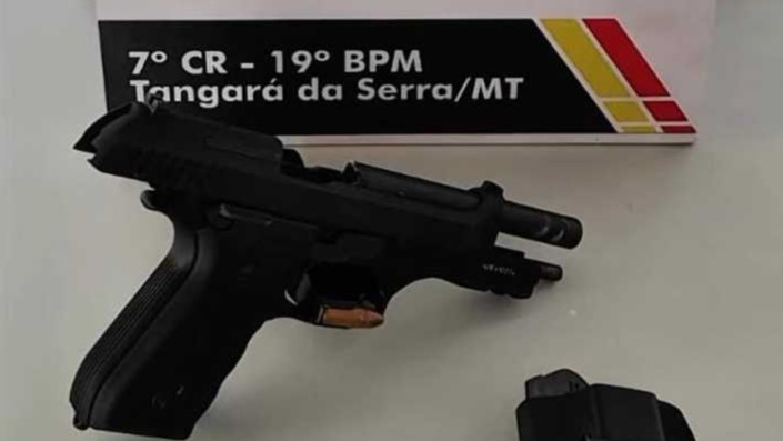 A Polícia Militar atendeu duas ocorrências distintas no fim de semana em Tangará da Serra (MT), resultando na prisão de um foragido da Justiça e na apreensão de uma arma de fogo furtada de uma residência.