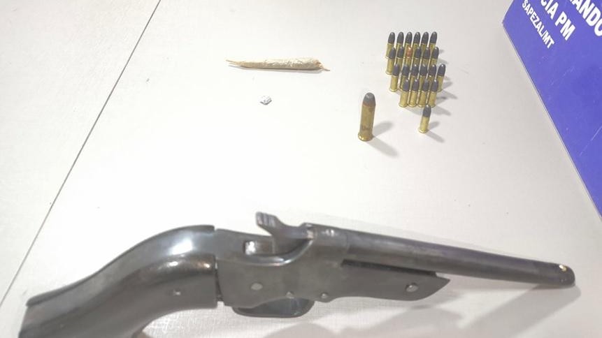 Um homem foi preso na noite deste sábado (3), suspeito por tentativa de feminicídio, em Sapezal (a 510 km de Cuiabá). Policiais militares da 6ª Companhia Independente apreenderam uma arma de fogo de fabricação artesanal, 24 munições de calibres diversos e um cigarro análogo à maconha.