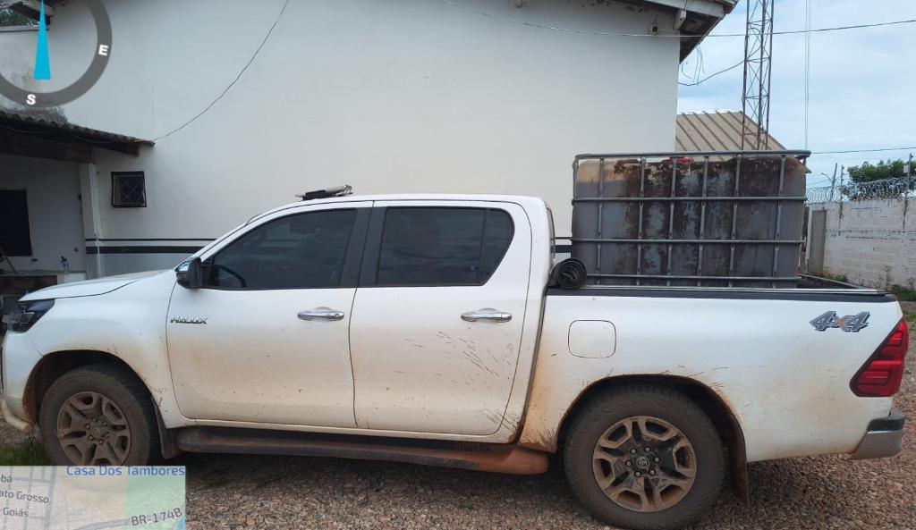 A equipe da Defron estava realizando a Operação Protetor das Fronteiras, em continuidade à Operação Tolerância Zero, com apoio da Regional de Pontes e Lacerda e da Regional de Cáceres, quando visualizou uma Hilux branca transportando um contêiner.